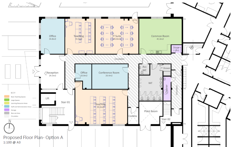 Sense of Space recently produced a Feasibility Report for the addition of another Short Stay School into the design scheme of a single-storey Alternative Provision Short Stay School, adapting the design to become a 2-storey scheme. This was undertaken by adding to the exisiting Schedule of Accommodation and rationalising the floor plans to accomodate the extra cohort of pupils in one combined school.