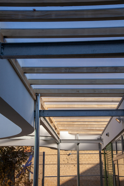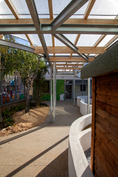 The detailed design involved a new 140m2 extension providing the main Childrens Centre facilities associated with the primary school. Externally a complex canopy links to the building and provides a covered play area to the pupils and community.