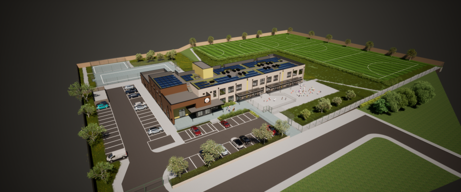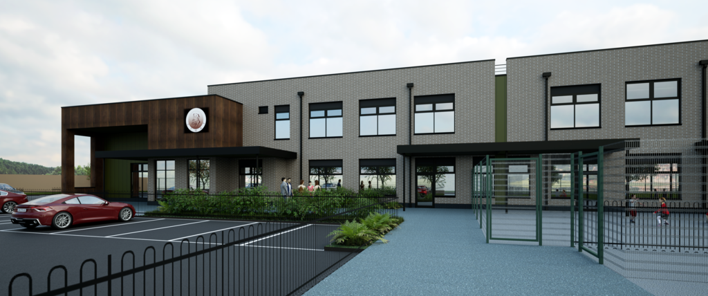 The 2FE school aims to promote outdoor learning and deliver a broad and rich corriculum by providing high quality teaching spaces, sports pitches, a multi use games area (MUGA) and dedicated car park with a pupil drop off zone. This will all be tied together by the use of site landscaping.