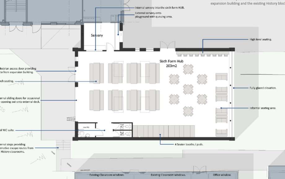 Following the completion of the new building, Horsforth School undertook a further scheme to provide a Sixth Form social space adjacent to the new expansion building.