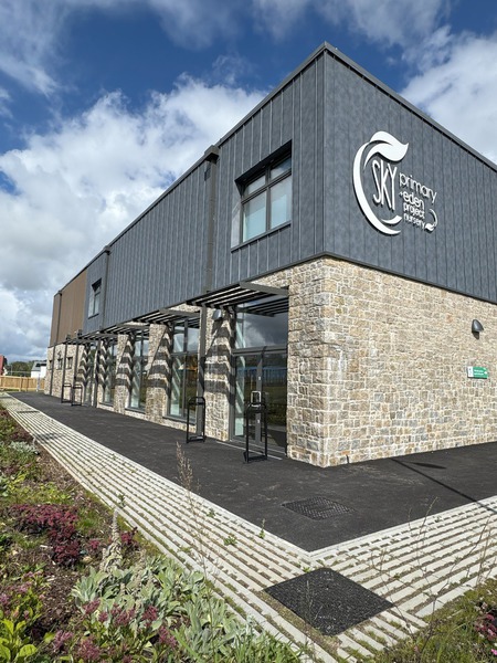 To integrate the new school's design within the Cornish landscape, local stone has been used to clad the lower level of the building with metal cladding and fibre cement panels above to withstand the harsh Cornish weather. Alongside the new building, a multi-use games area (MUGA) has been provided along with grass playing fields, soft planting areas, a dedicated habitat area for learning, and outdoor play areas.
