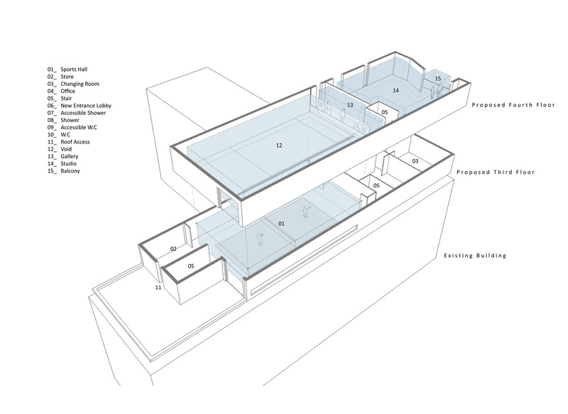 This scheme provides a new sports facility to a city centre school. With limited space available on the site the new sports hall is proposed as a roof extension and was designed to use off site building techniques to minimise the disruption on the operation of the school.
